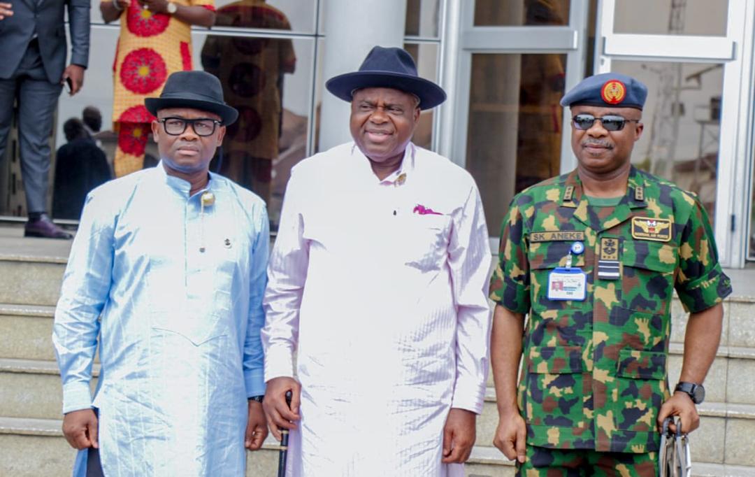 Aneke described the visit as a “homecoming” when he led top officers of the Nigerian Air Force on a courtesy visit to Governor Douye Diri at the Government House in Yenagoa.