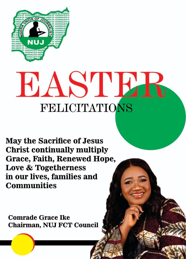 The Chairman of the Nigeria Union of Journalists (NUJ), Federal Capital Territory (FCT) Council, Grace Ike, has extended Easter greetings to Christians across the FCT and Nigeria, urging citizens to embrace unity, sacrifice, and renewed hope.