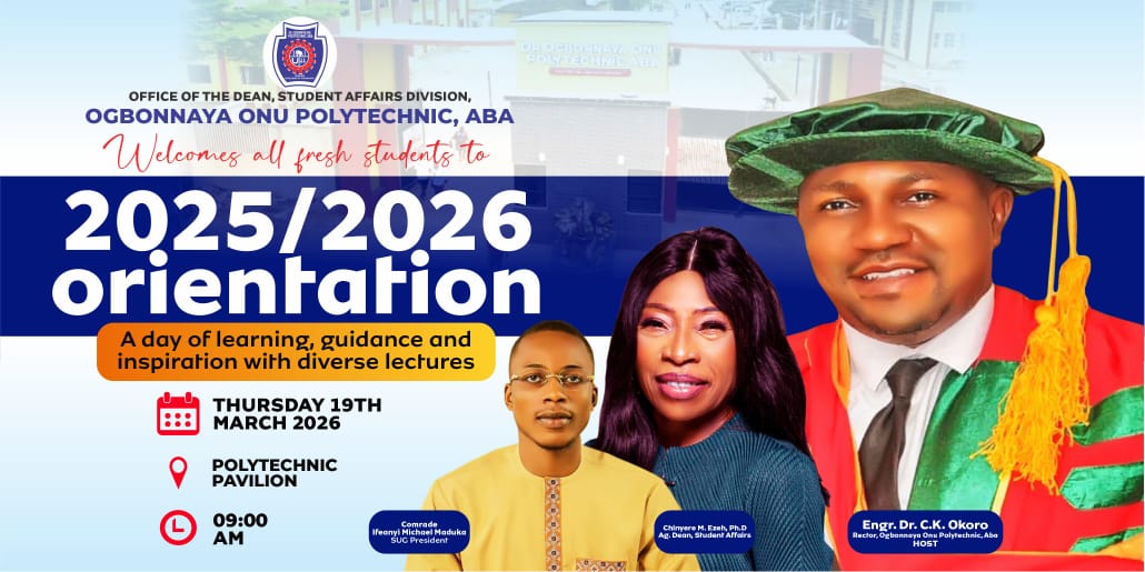 The Rector of Ogbonnaya Onu Polytechnic, Aba, Prof. Christopher Okoro Kalu, has advised students to stay focused and disciplined in pursuing their goals. He warned that distractions could affect their future.